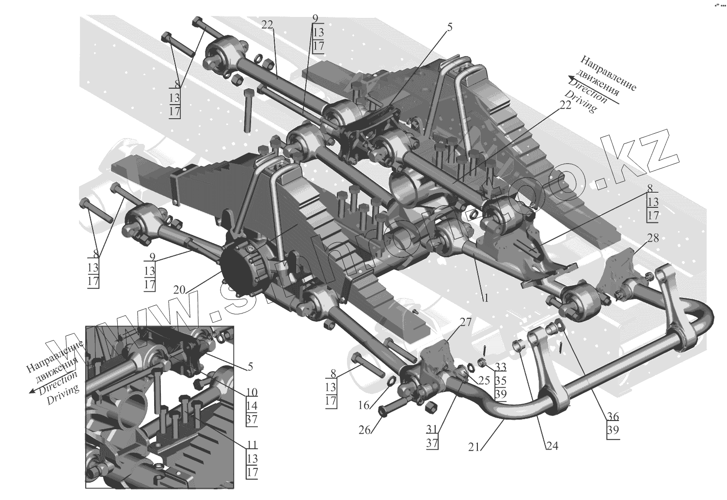Каталог запасных частей к технике: МАЗ-630333. Установка подвески задней 551605-2900002