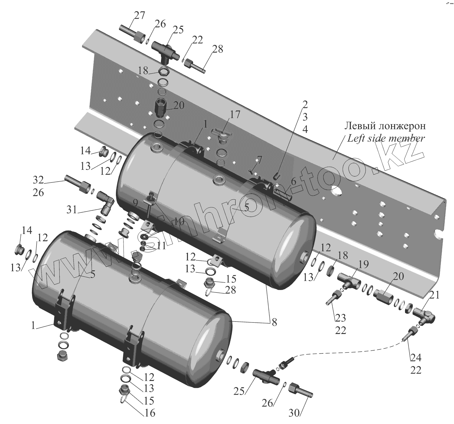 Каталог запасных частей к технике: МАЗ-630333. Установка ресиверов 63031-3513004