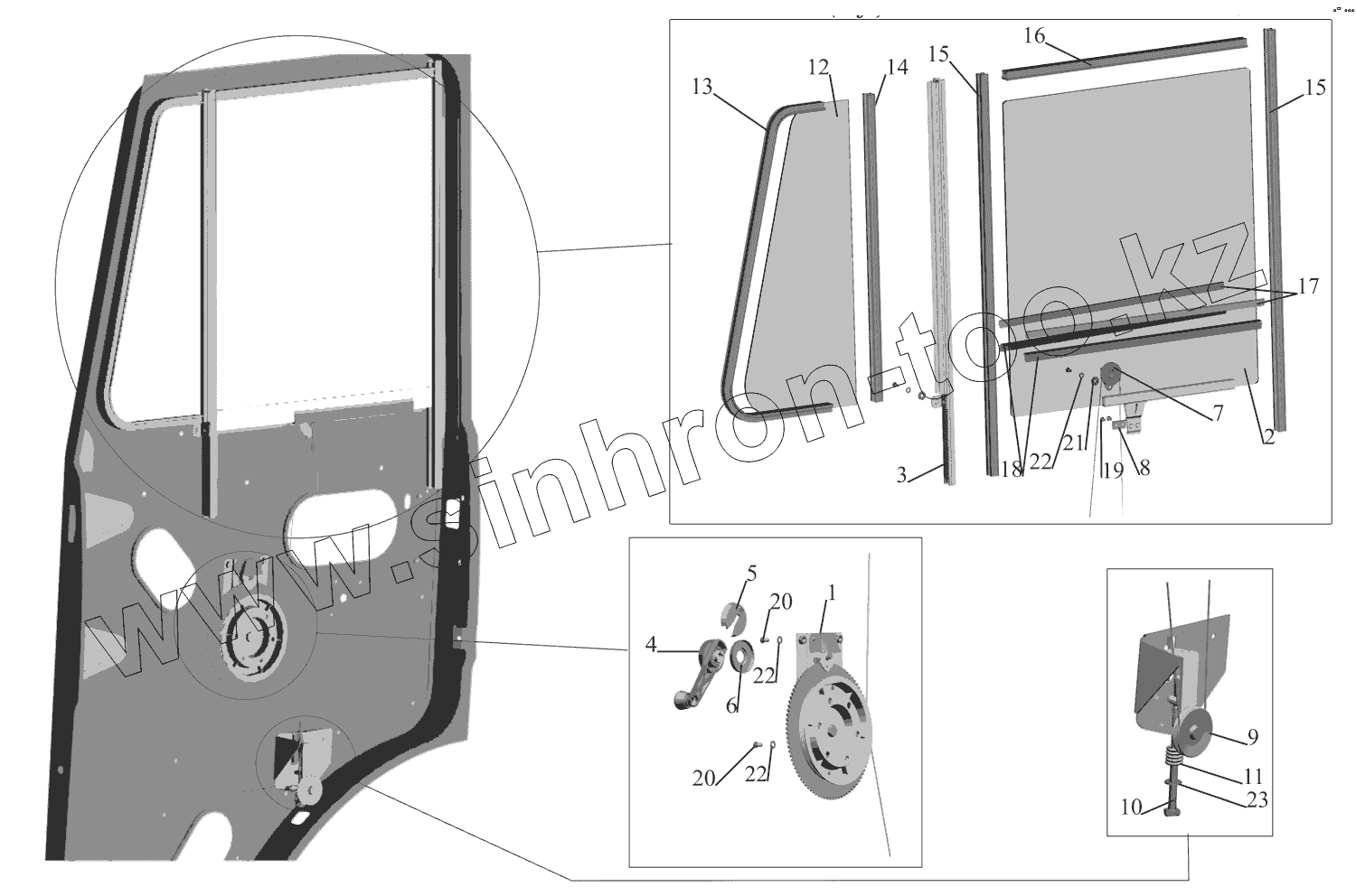 Каталог запасных частей к технике: МАЗ-630333. Установка стеклоподъемника и ручки