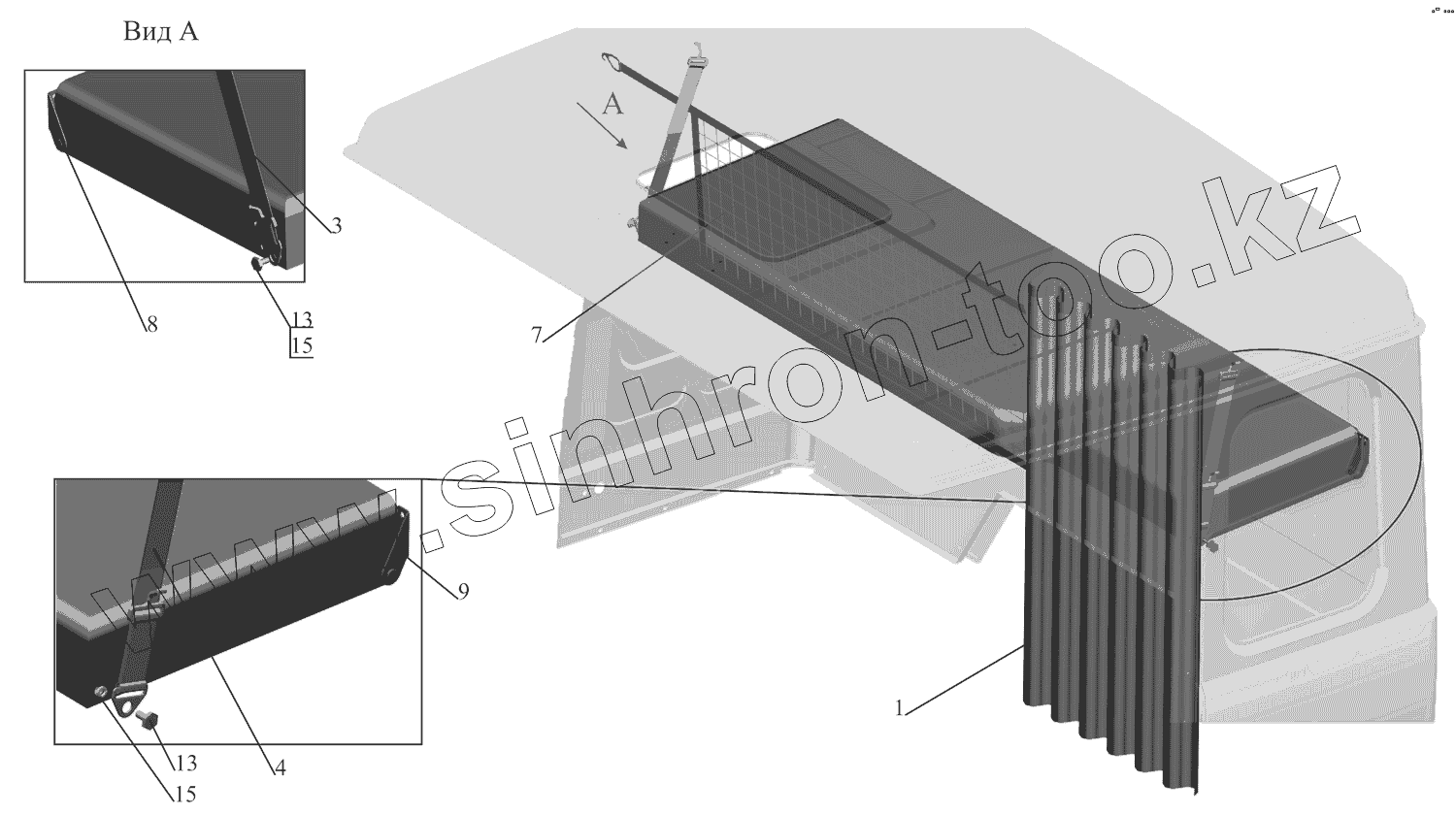 Каталог запасных частей к технике: МАЗ-630333. Установка верхнего спального места 64221-8200011