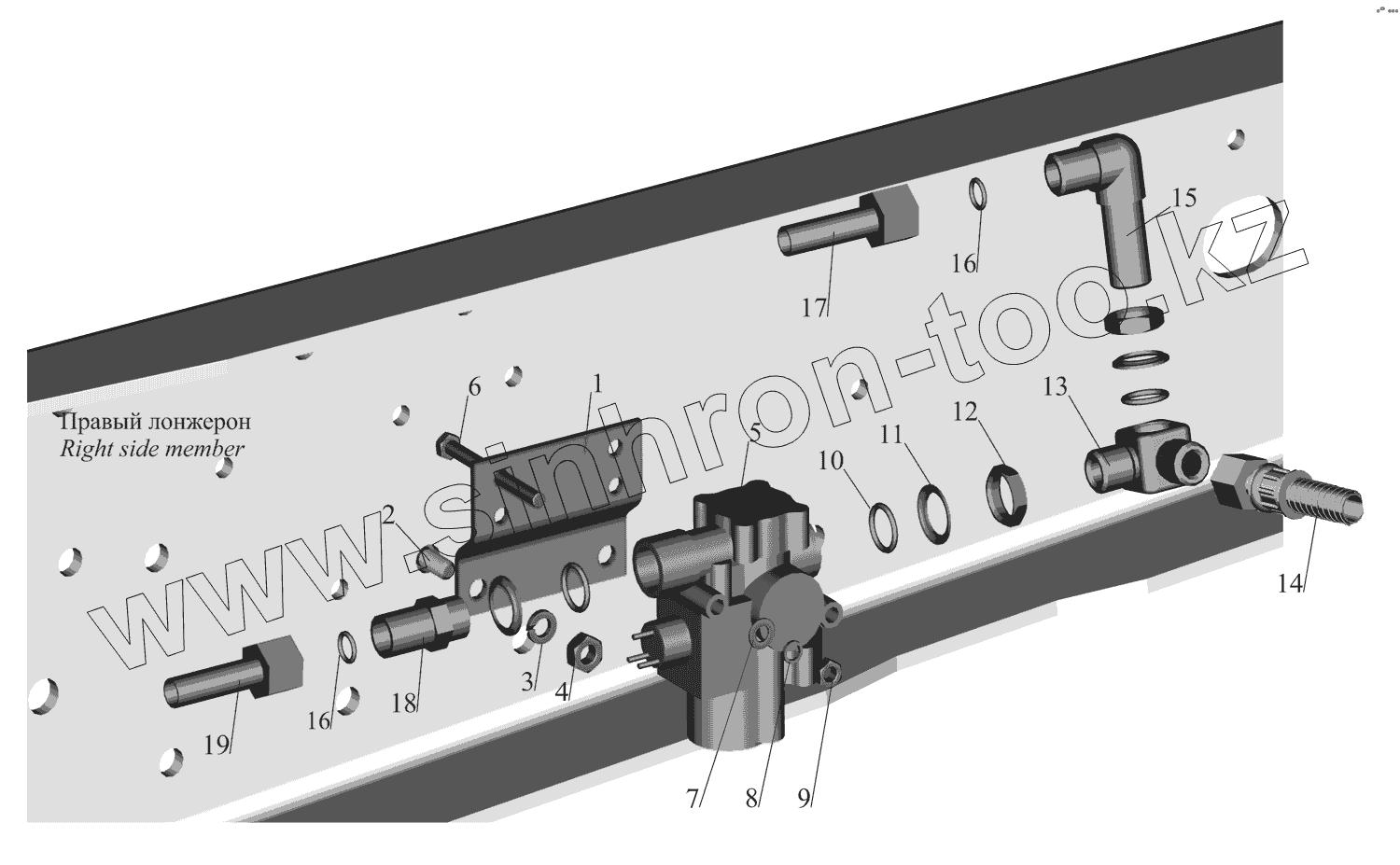 Каталог запасных частей к технике: МАЗ-630333. Установка задних модуляторов