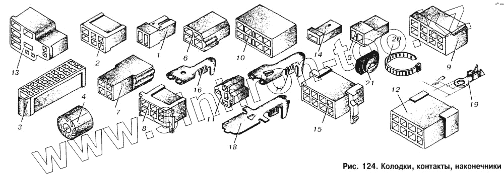 Каталог запасных частей к технике: МАЗ-6303. Колодки, контакты, наконечники