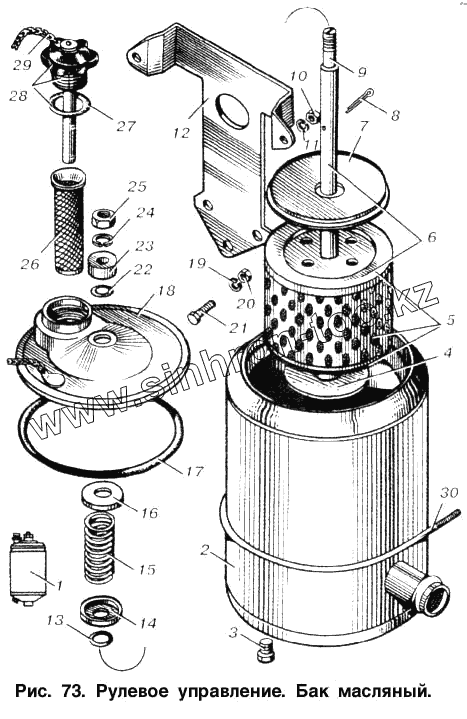 Каталог запасных частей к технике: МАЗ-6303. Рулевое управление. Бак масляный