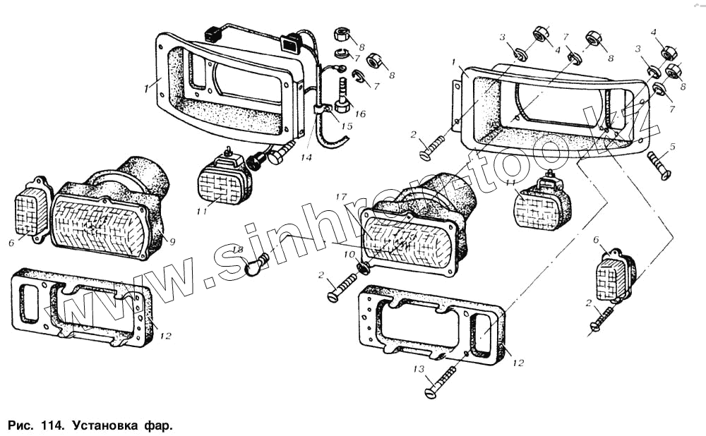 Каталог запасных частей к технике: МАЗ-6303. Установка фар