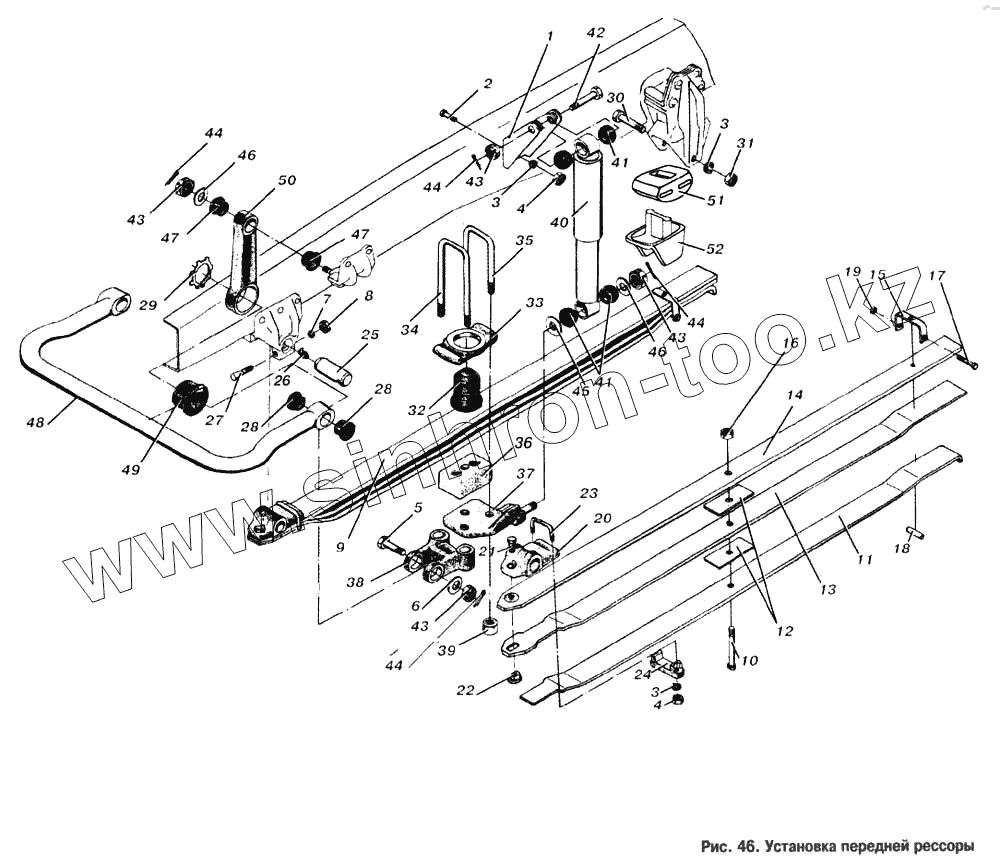 Каталог запасных частей к технике: МАЗ-6303. Установка передней рессоры