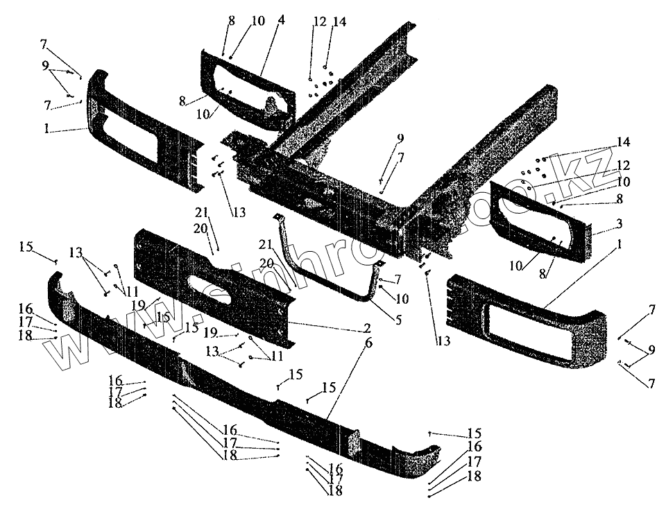 Каталог запасных частей к технике: МАЗ-6303 (2005). Крепление бампера