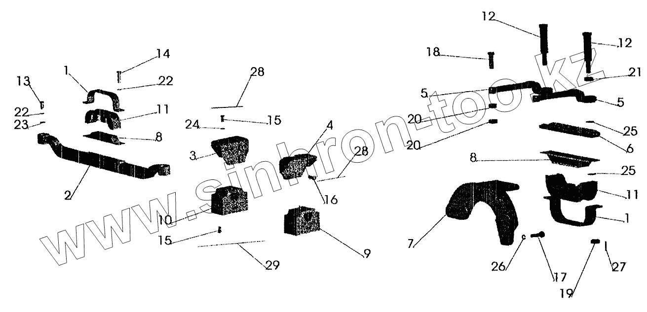 Каталог запасных частей к технике: МАЗ-6303 (2005). Крепление двигателя на автомобиле МАЗ-533702