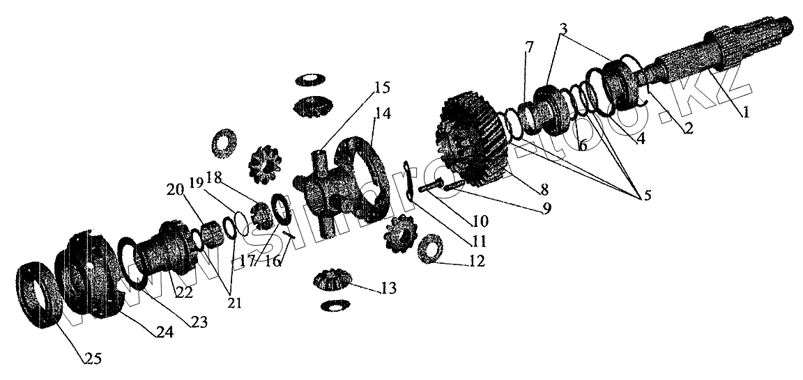 Каталог запасных частей к технике: МАЗ-6303 (2005). Редуктор среднего моста. Дифференциал межосевой