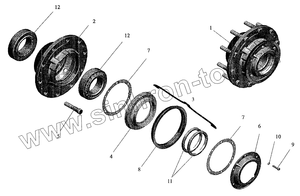 Каталог запасных частей к технике: МАЗ-6303 (2005). Ступица моста
