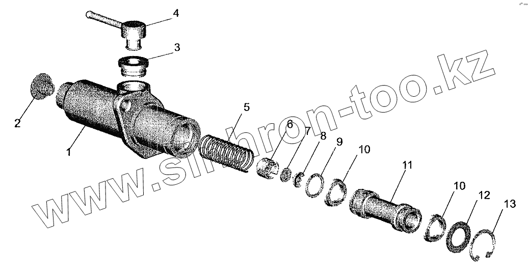 Каталог запасных частей к технике: МАЗ-6303 (2005). Цилиндр подпедальный 6430-1602510