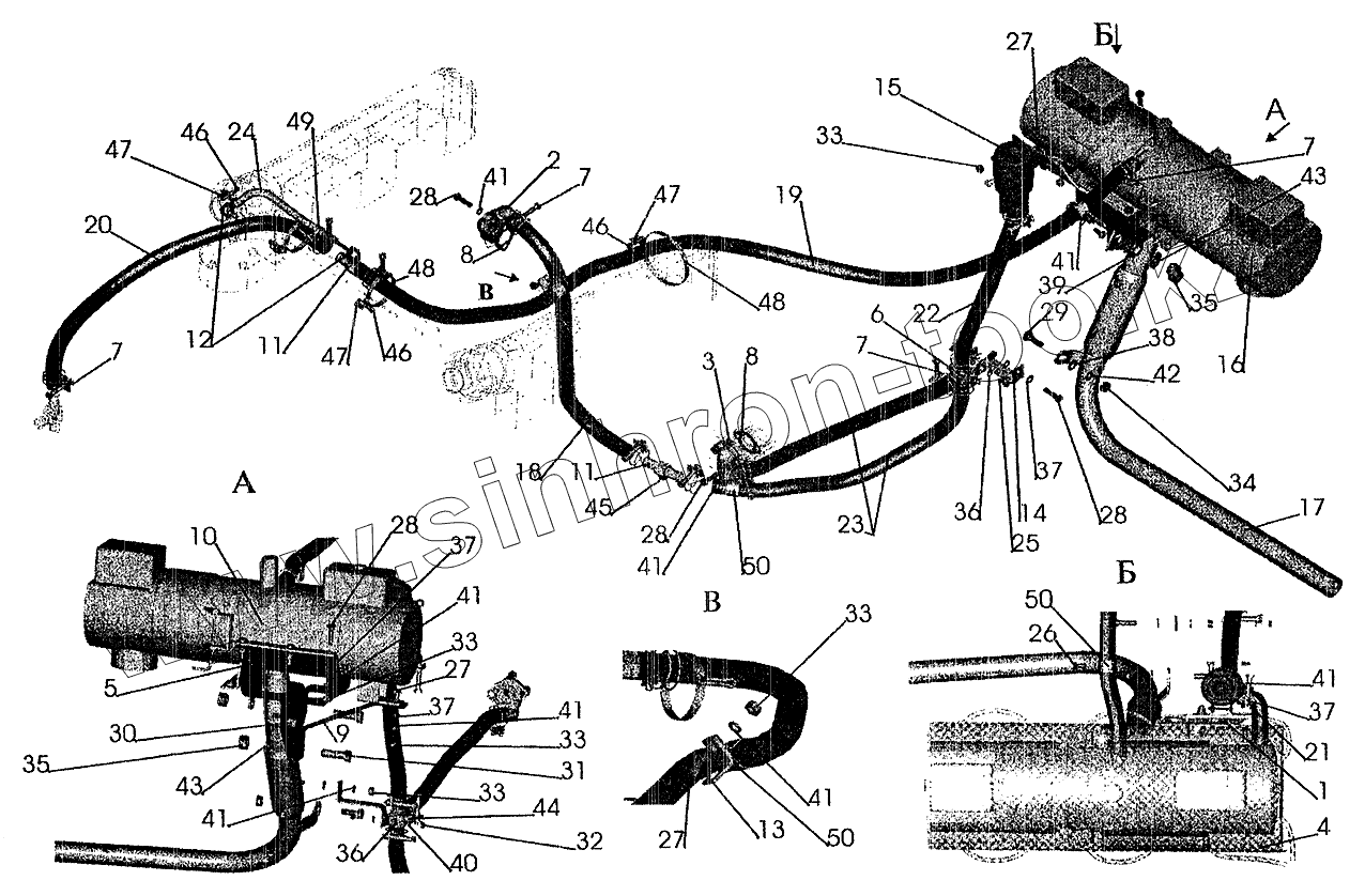 Каталог запасных частей к технике: МАЗ-6303 (2005). Установка подогревателя
