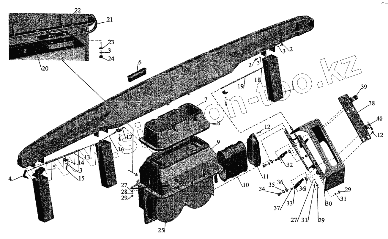 Каталог запасных частей к технике: МАЗ-6303 (2005). Установка воздушных заслонок и отопителя кабины