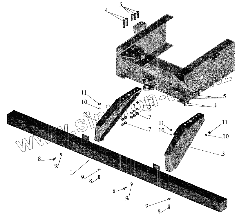 Каталог запасных частей к технике: МАЗ-6303 (2005). Установка заднего бампера