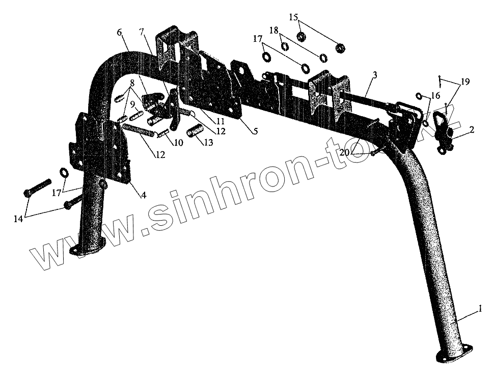 Каталог запасных частей к технике: МАЗ-6303 (2005). Запорный механизм большой кабины