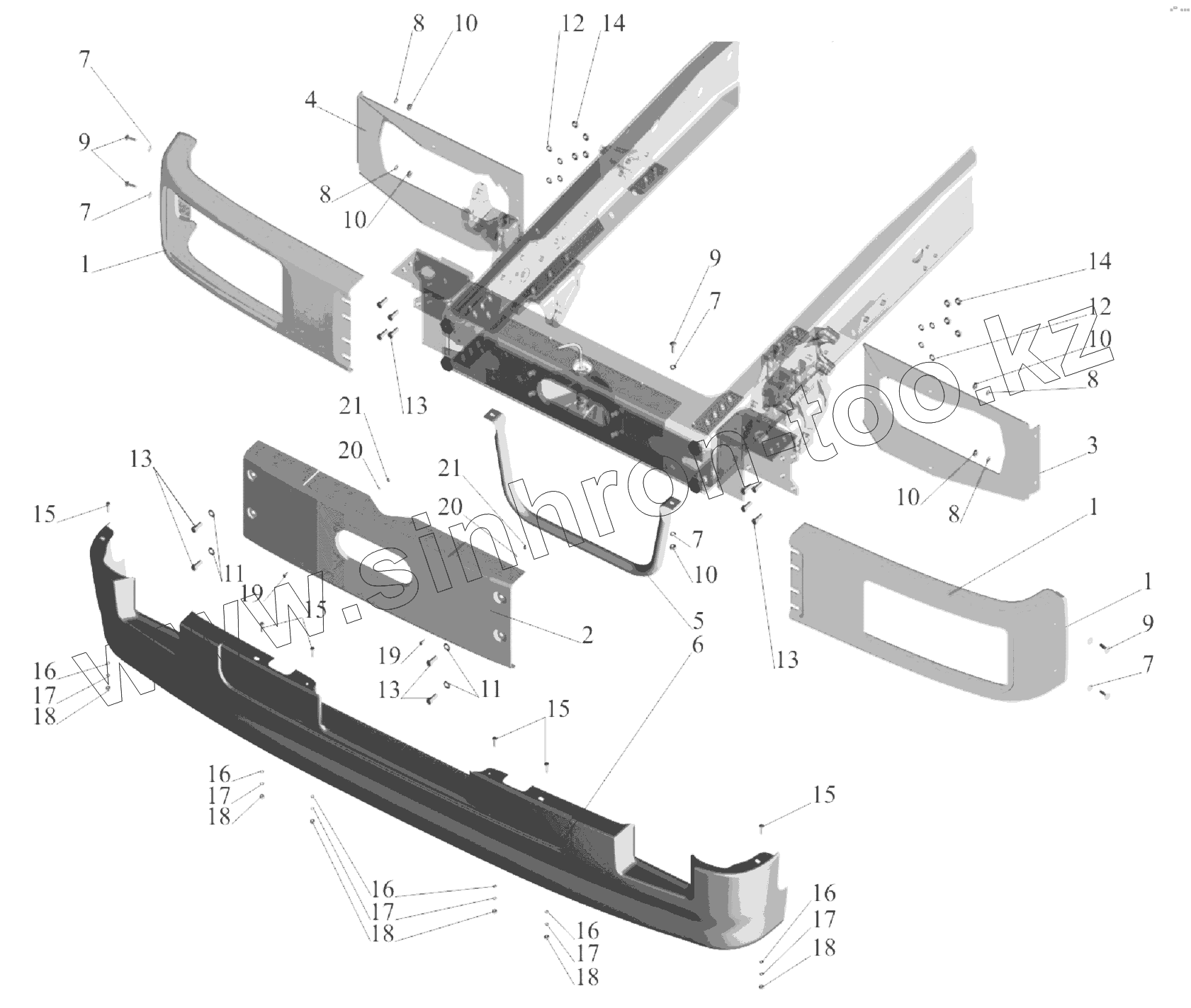 Каталог запасных частей к технике: МАЗ-6303A3, 6303A5. Крепление бампера