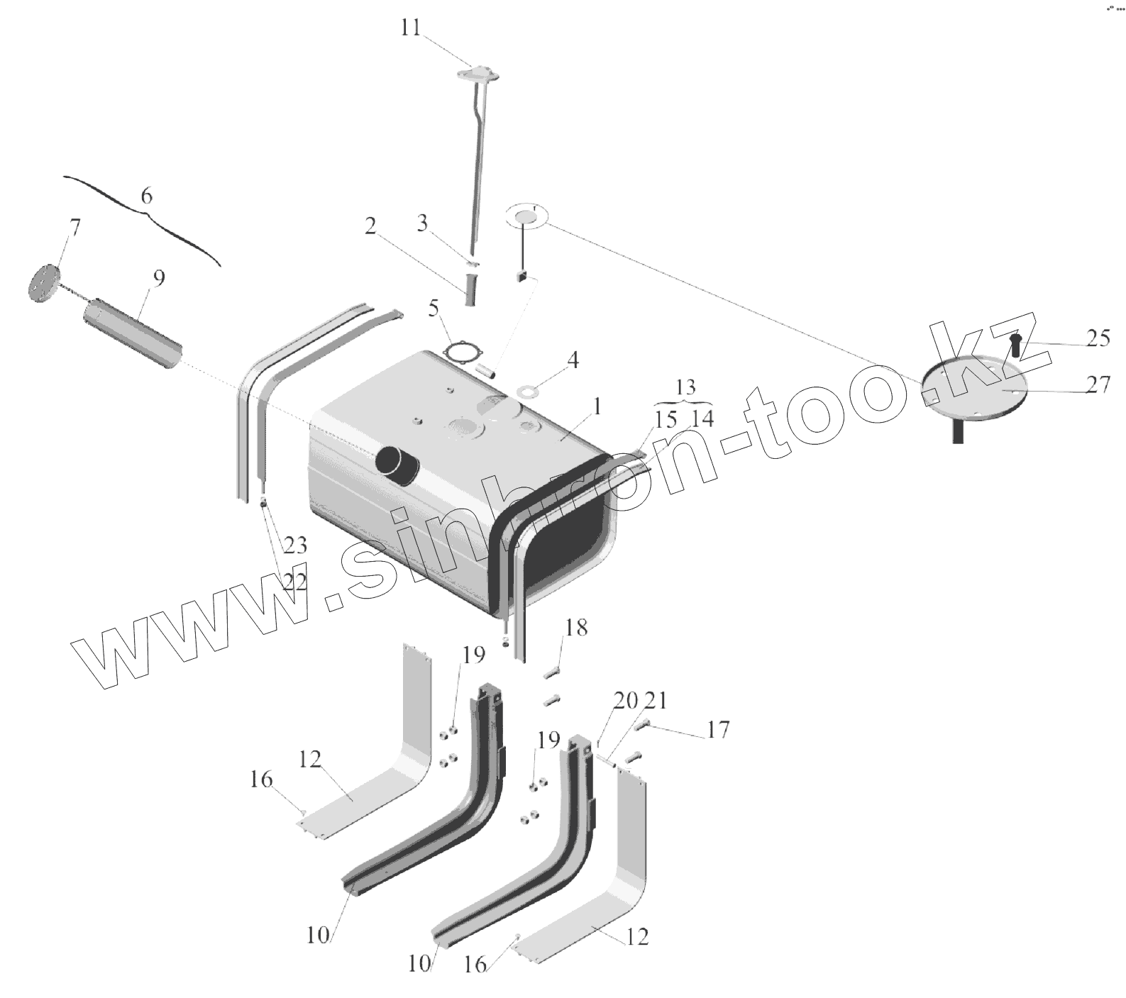 Каталог запасных частей к технике: МАЗ-6303A3, 6303A5. Крепление топливного бака 533608-1101002