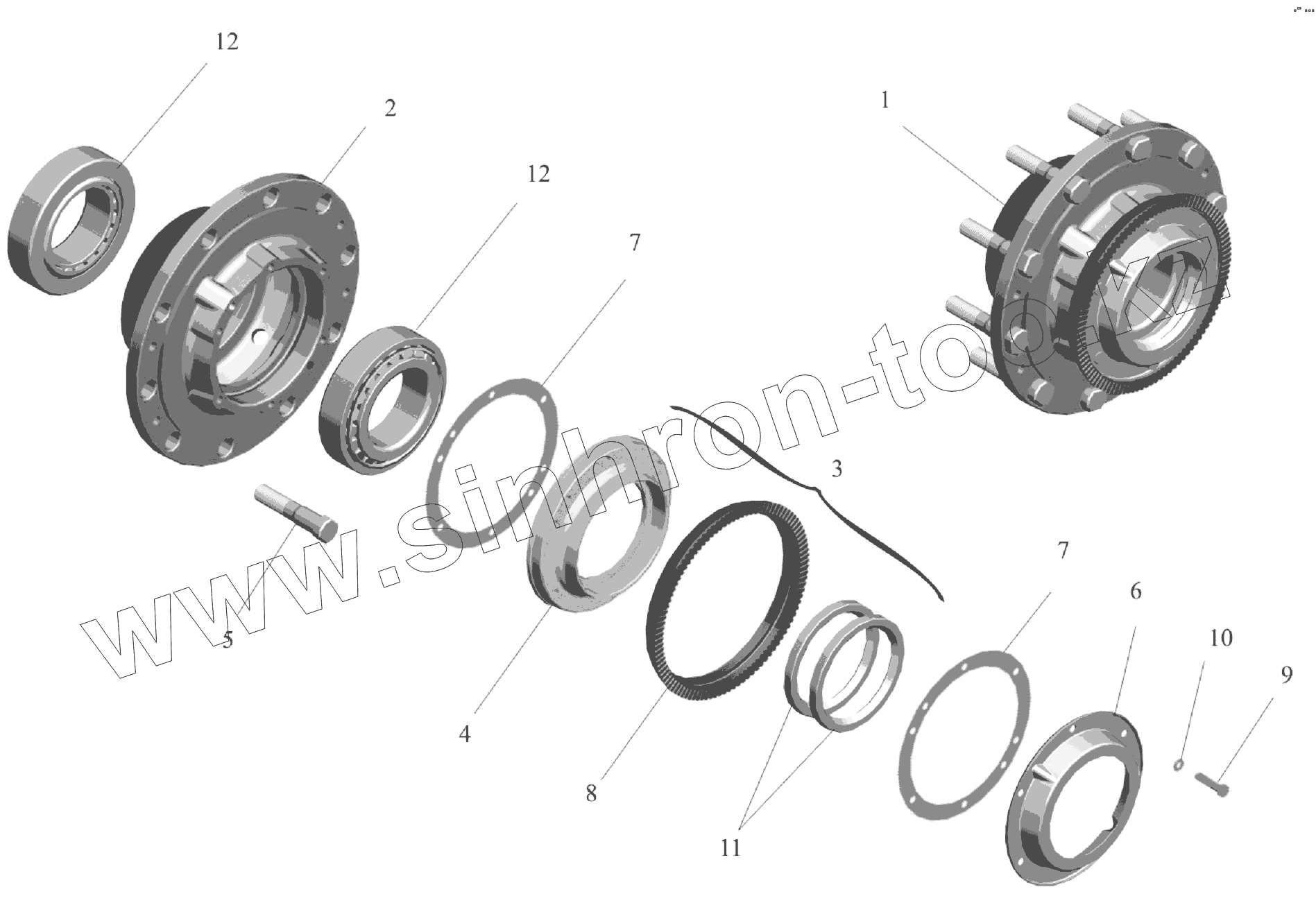 Каталог запасных частей к технике: МАЗ-6303A3, 6303A5. Ступица заднего моста
