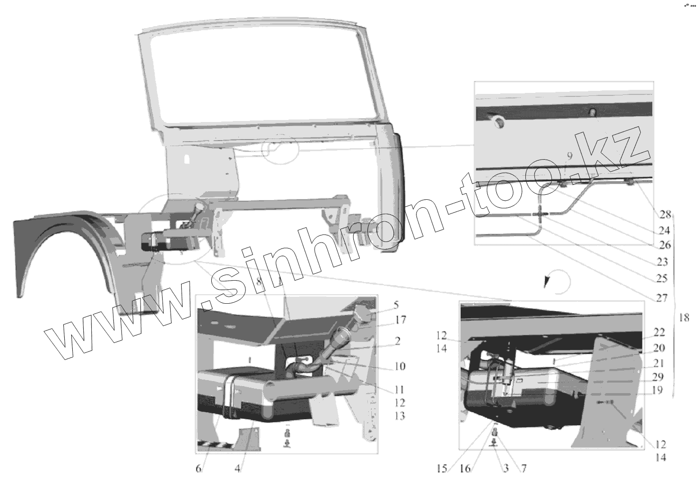 Каталог запасных частей к технике: МАЗ-6303A3, 6303A5. Установка омывателя