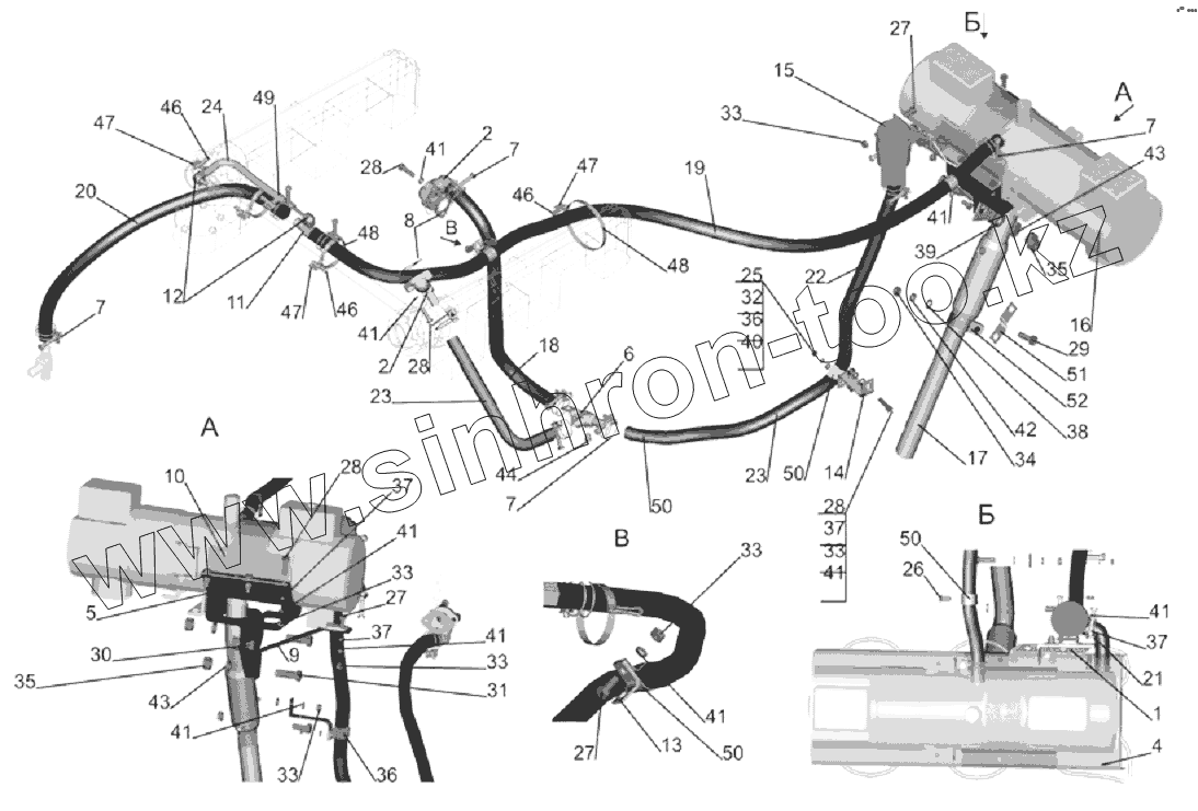 Каталог запасных частей к технике: МАЗ-6303A3, 6303A5. Установка подогревателя