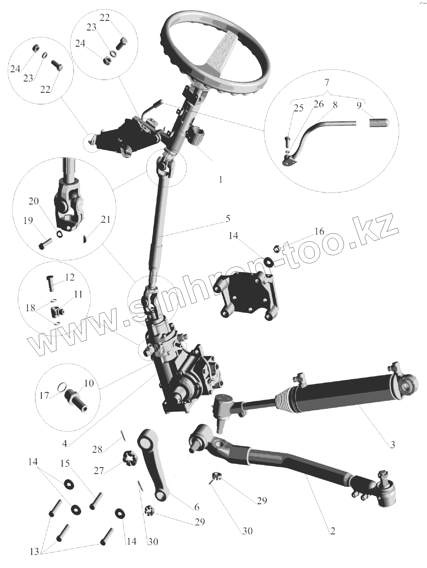 Каталог запасных частей к технике: МАЗ-6303A3, 6303A5. Установка рулевой колонки и рулевого механизма