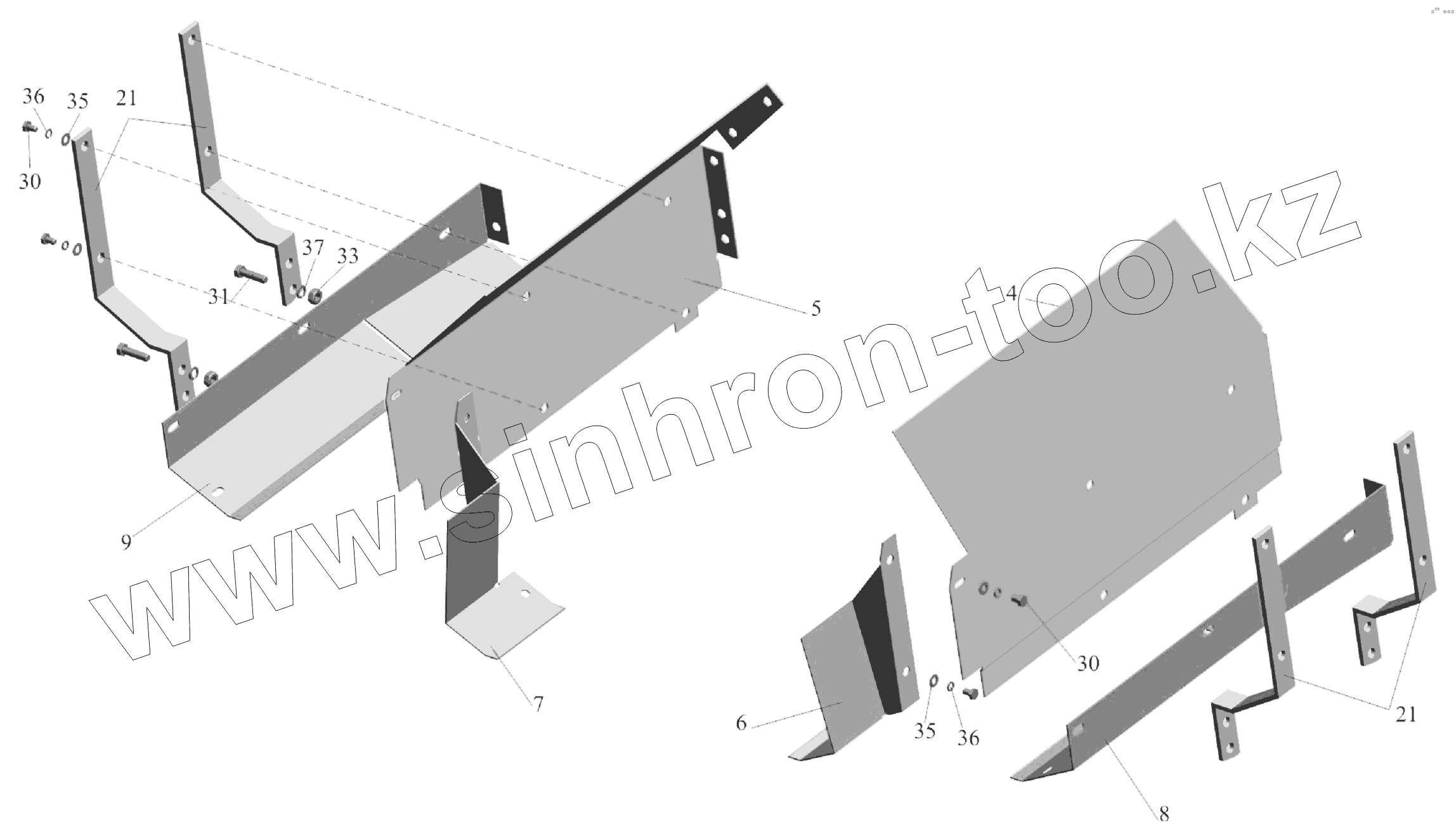 Каталог запасных частей к технике: МАЗ-6303A3, 6303A5. Установка шумоизоляционных экранов 555102-1061003