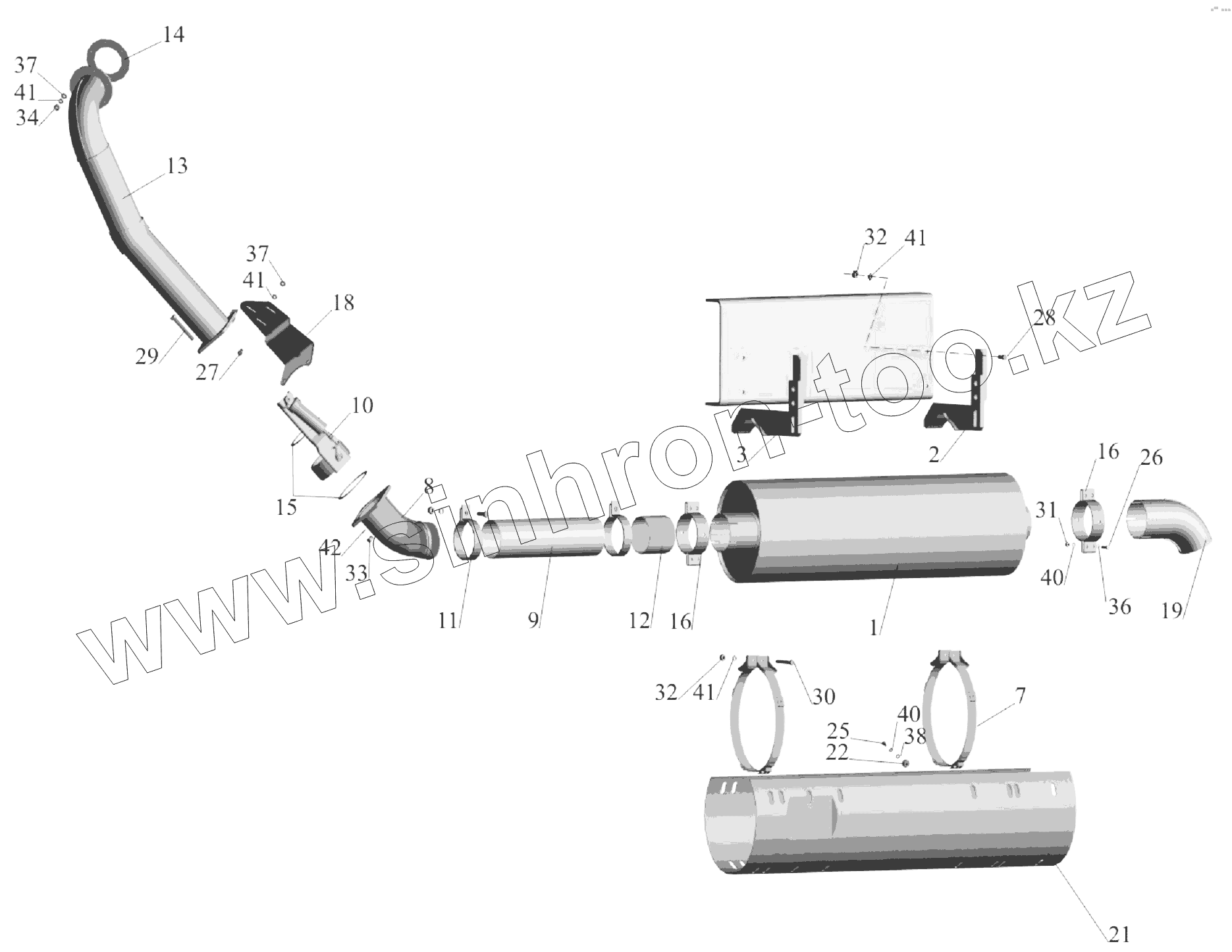 Каталог запасных частей к технике: МАЗ-6303A3, 6303A5. Установка системы выпуска газов 5337А3-1200001