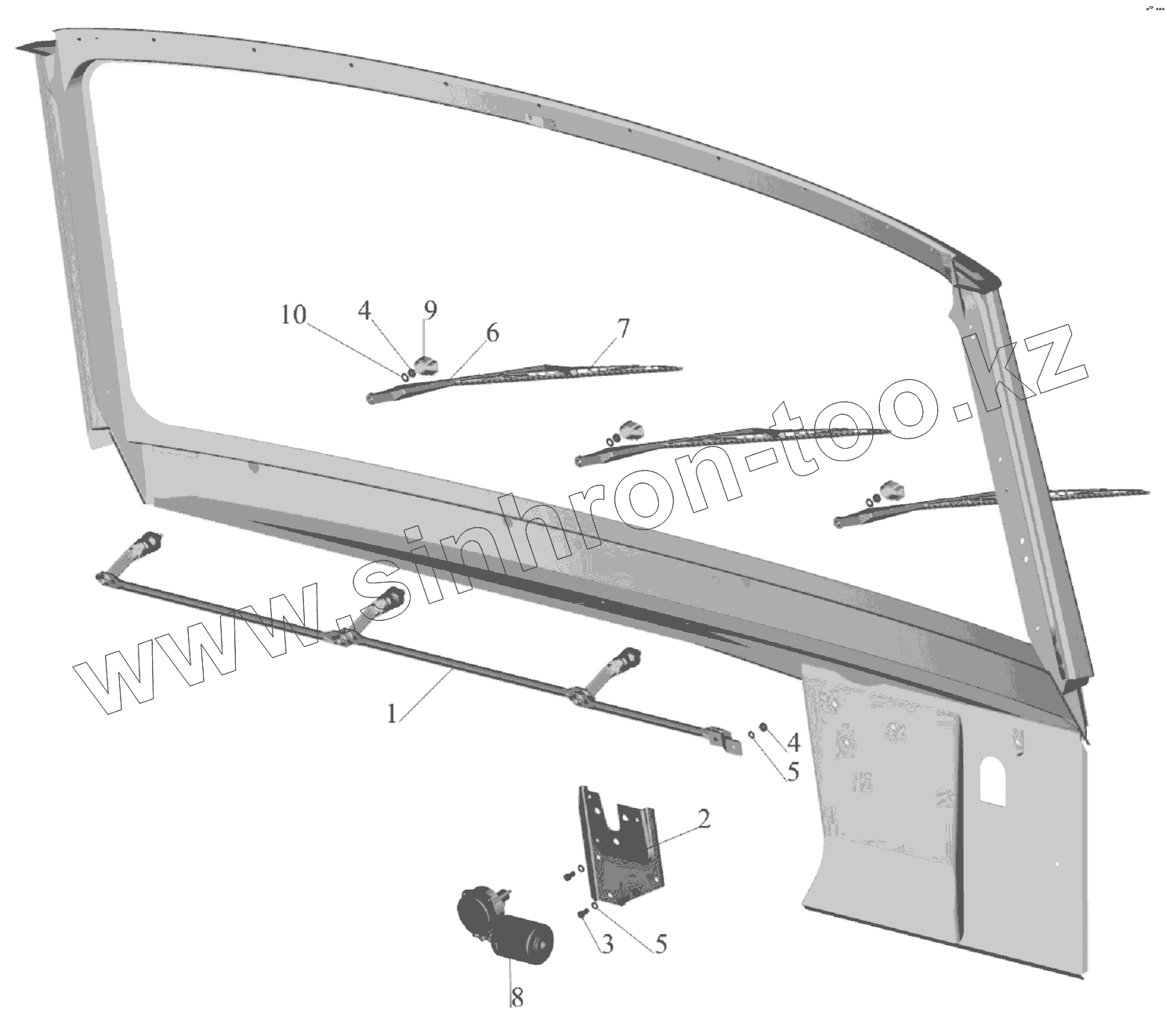 Каталог запасных частей к технике: МАЗ-6303A3, 6303A5. Установка стеклоочистителя 64221-3700041-010