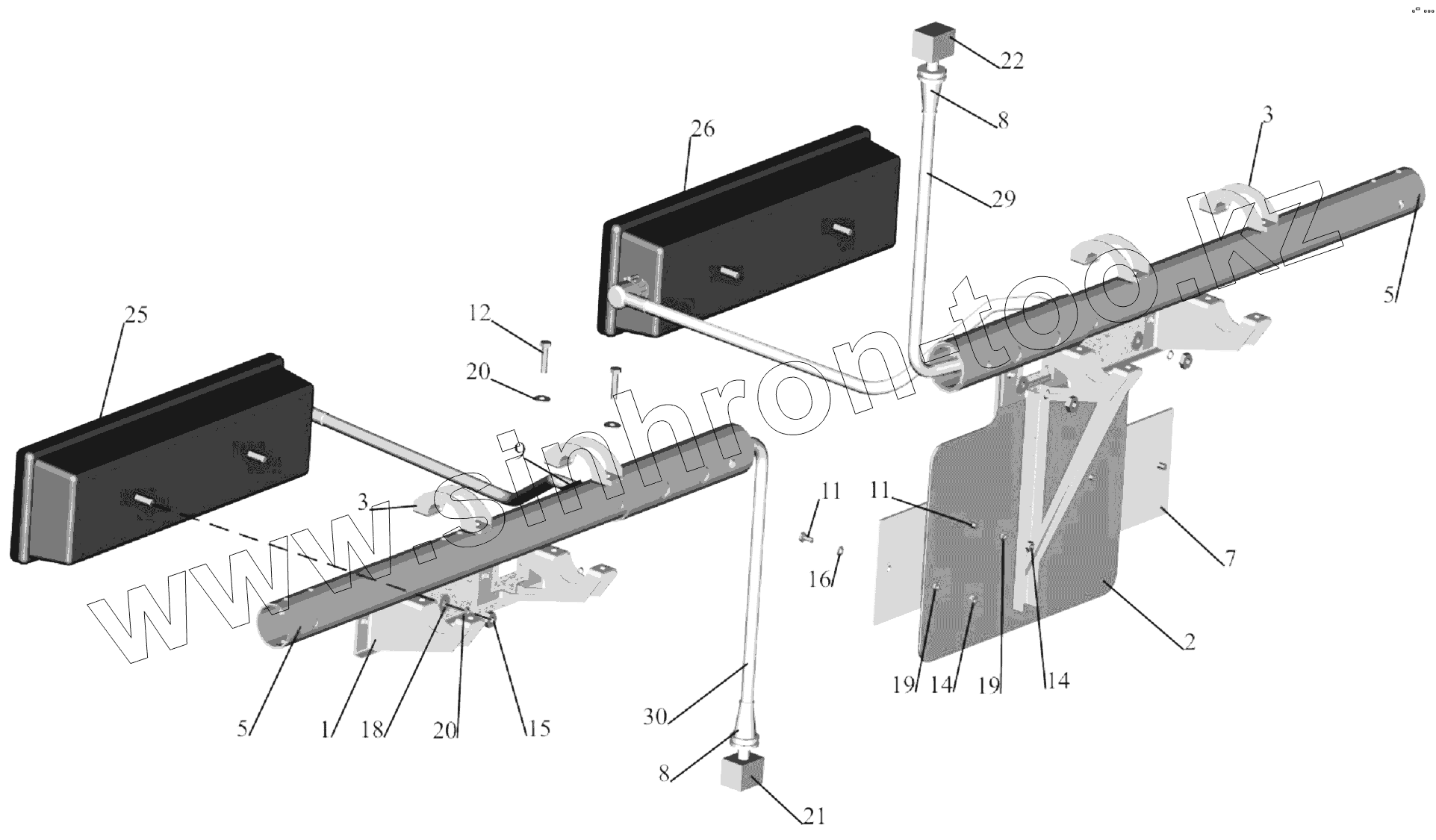 Расположение разъемов и элементов электрооборудования на шасси автомобилей без платформы и без электропневмовыводов на прицеп