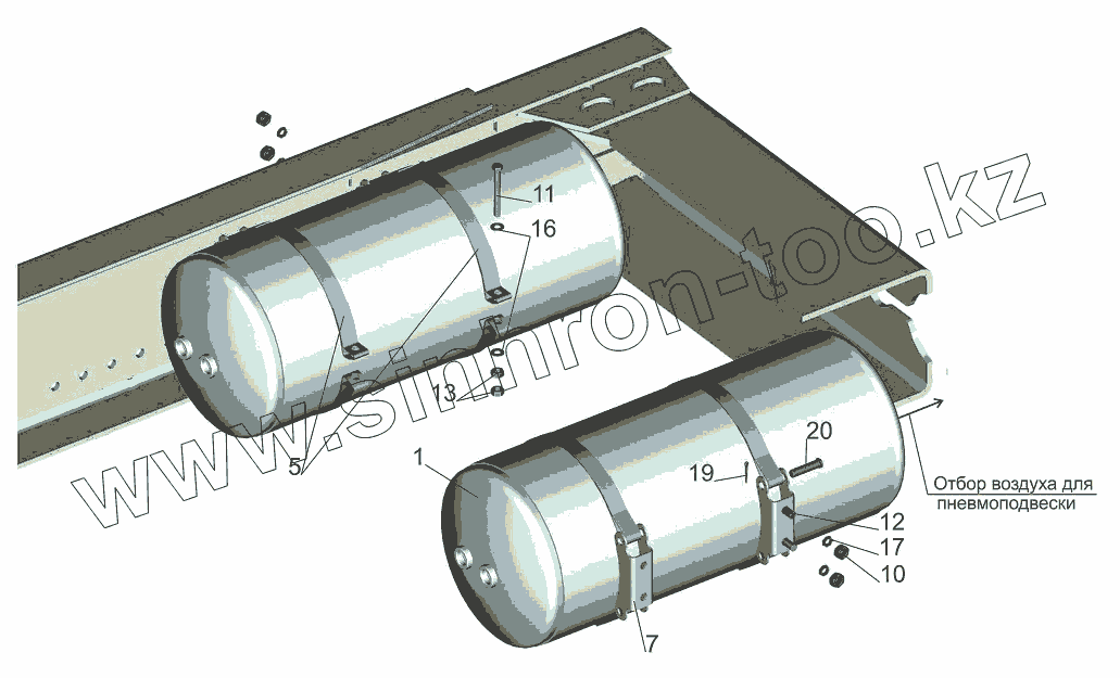 Каталог запасных частей к технике: МАЗ-631019. Крепление ресиверов 631019-3513006