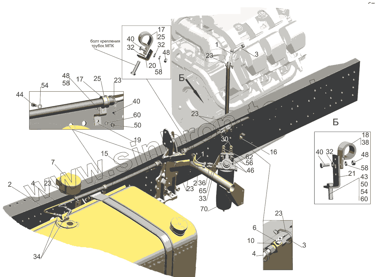 Каталог запасных частей к технике: МАЗ-631019. Крепление топливопроводов 544019-1104002-010