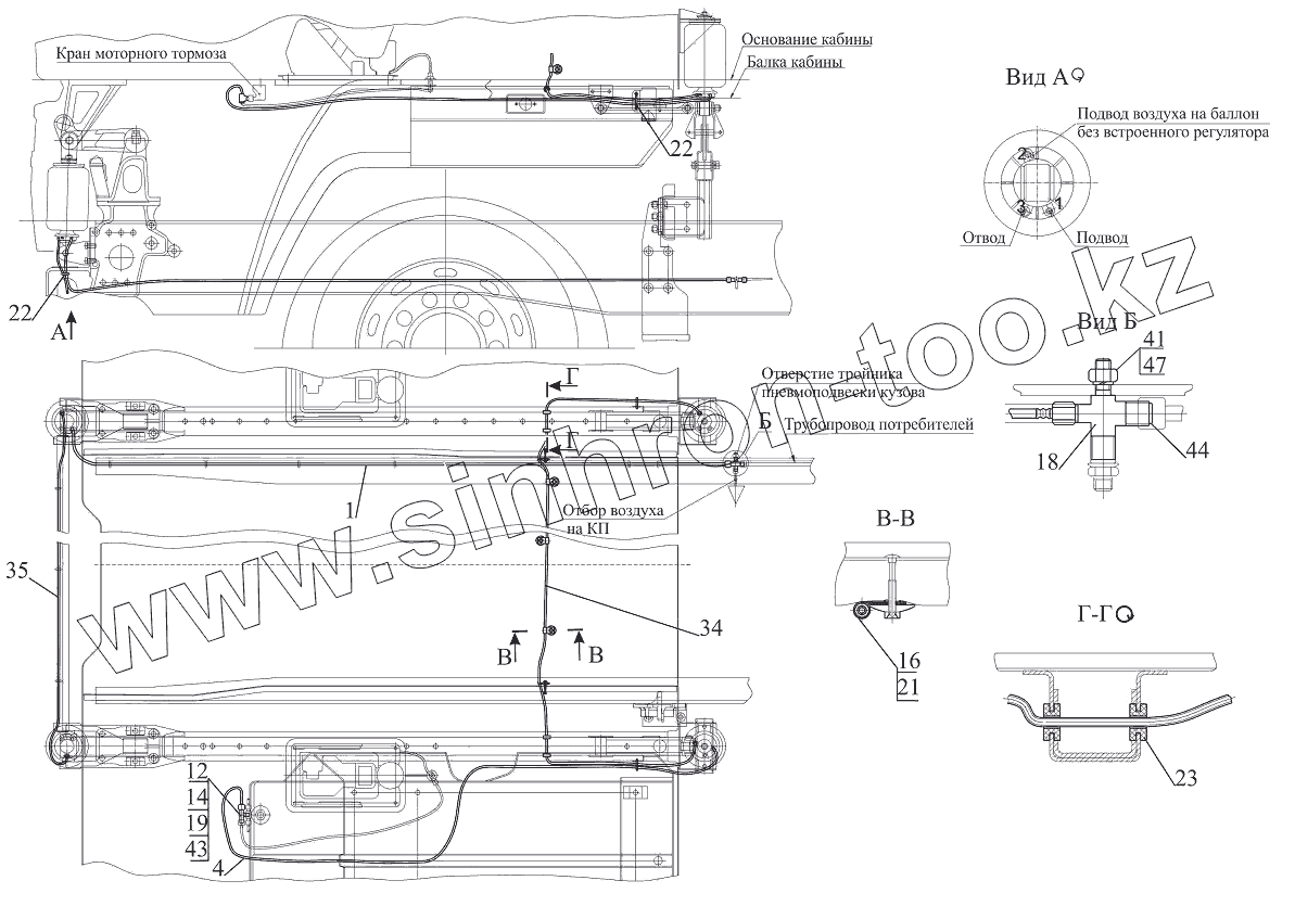 Каталог запасных частей к технике: МАЗ-631019. Пневмопитание подвески кабины 643019-5001930