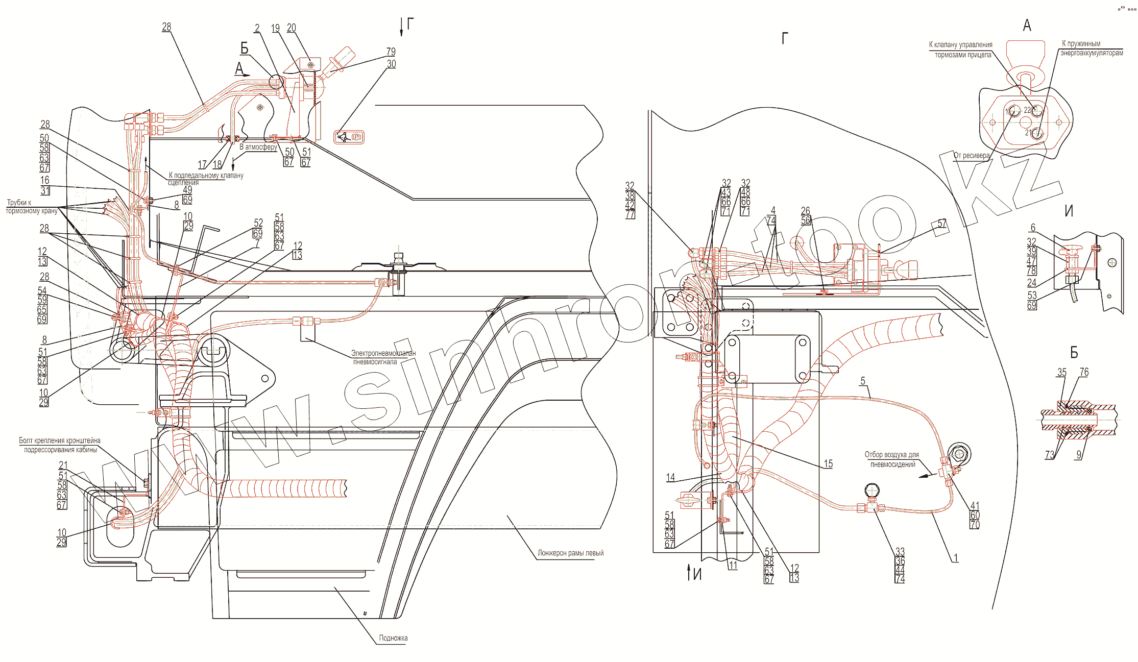 Каталог запасных частей к технике: МАЗ-631019. Привод стояночного тормоза 544019-3537006