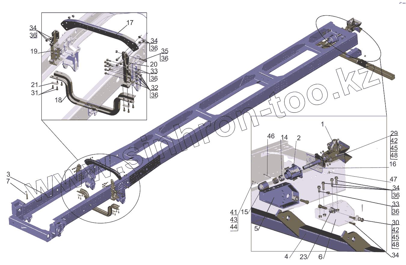 Каталог запасных частей к технике: МАЗ-631019. Рама 6310E9-2800010-031