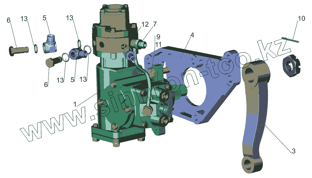 Каталог запасных частей к технике: МАЗ-631019. Рулевой механизм с кронштейном 544019-3400006