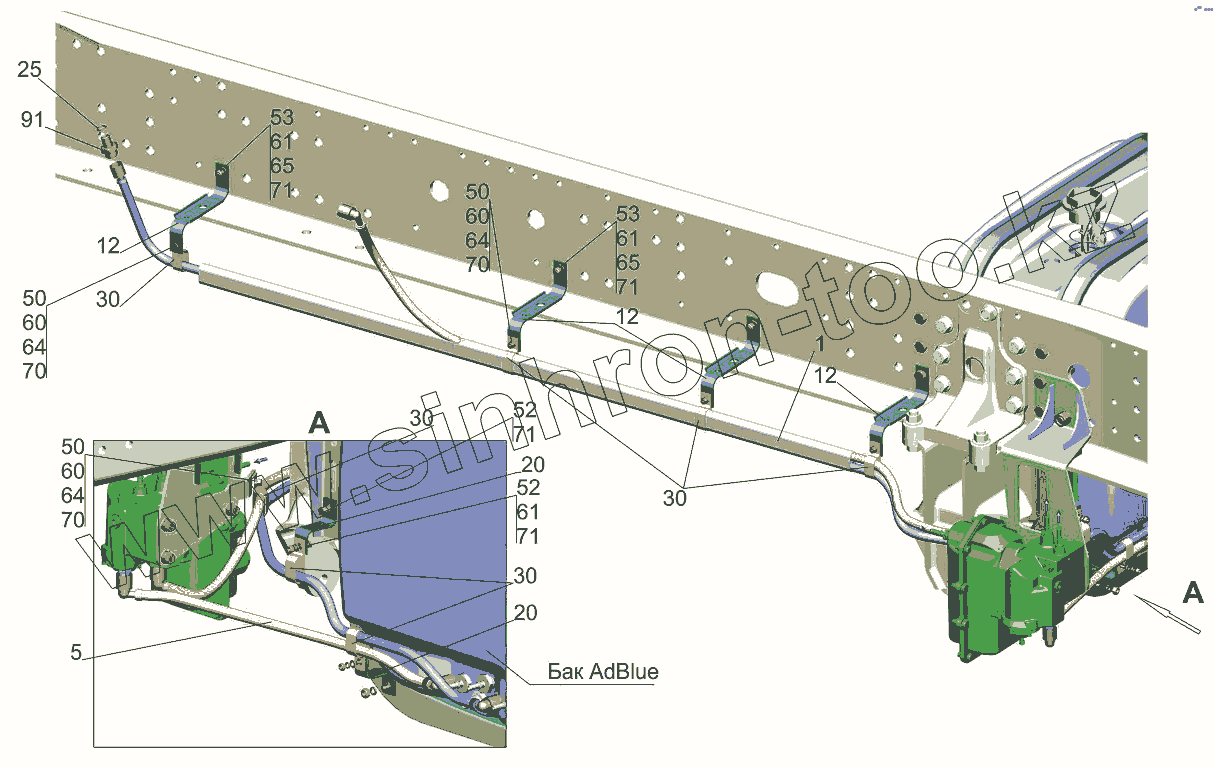 Каталог запасных частей к технике: МАЗ-631019. Трубопроводы подогрева системы подавления токсичных 544019-1402001