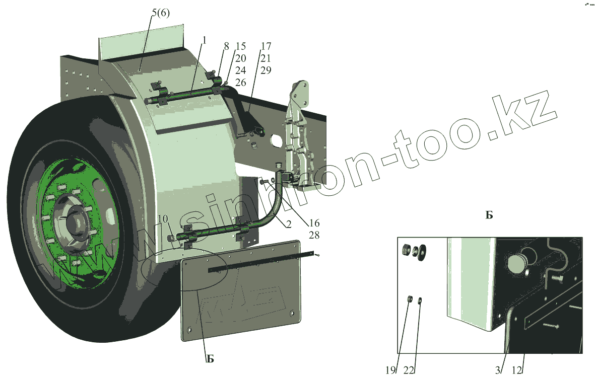 Каталог запасных частей к технике: МАЗ-631019. Установка брызговиков передних колес 643019-8400030