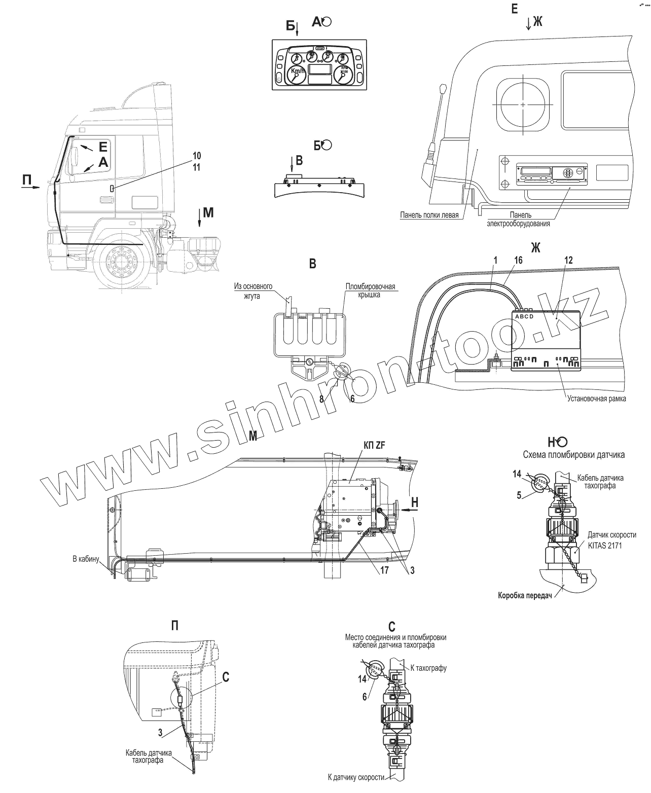 Каталог запасных частей к технике: МАЗ-631019. Установка и пломбировка тахографа 5440-3800005