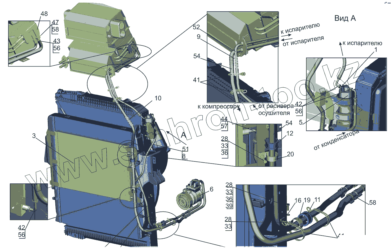 Каталог запасных частей к технике: МАЗ-631019. Установка кондиционера 544019-8100004, (-700)