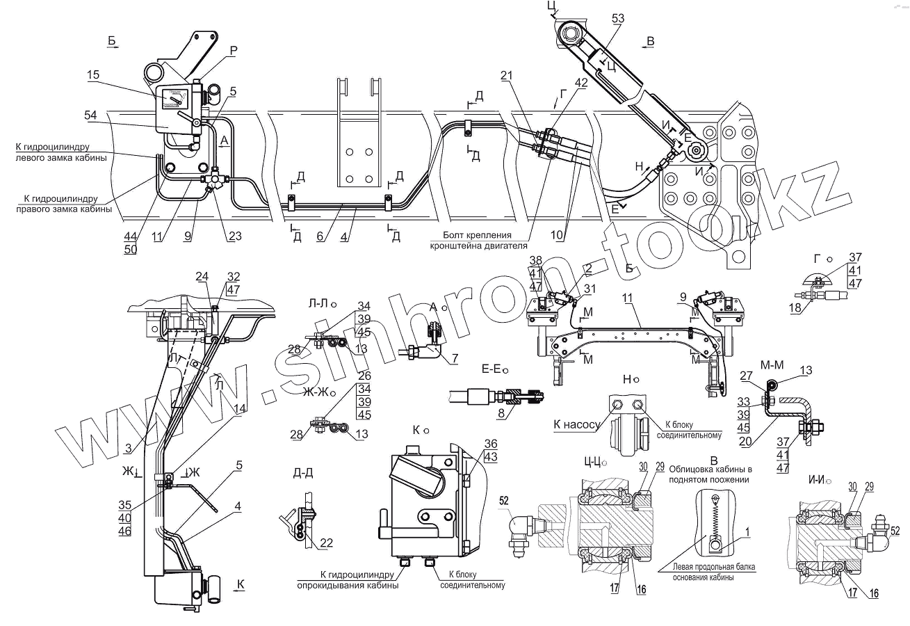 Каталог запасных частей к технике: МАЗ-631019. Установка механизма подъема кабины 544019-5000040-011