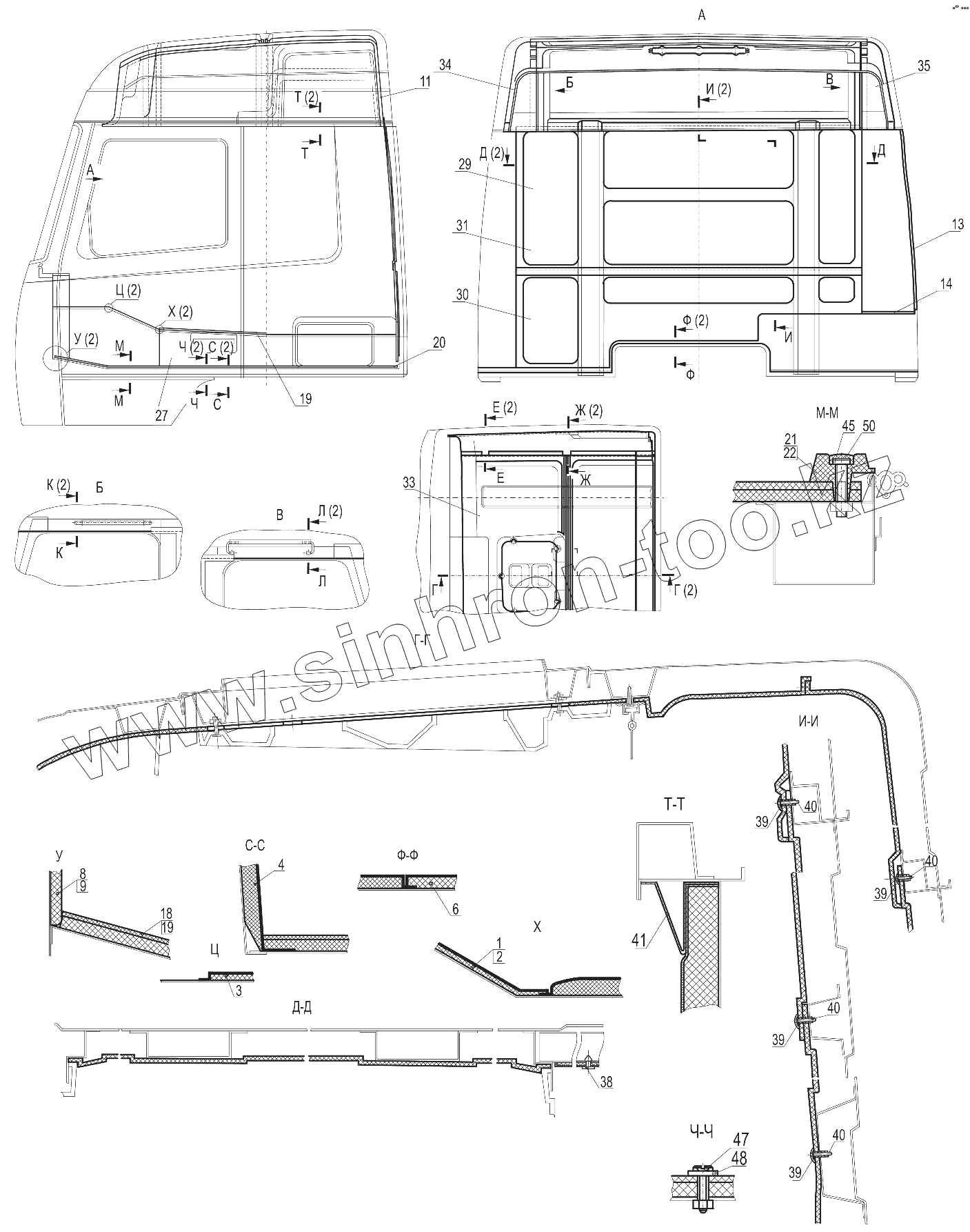 Каталог запасных частей к технике: МАЗ-631019. Установка обивок и ковриков 643019-5000100-020