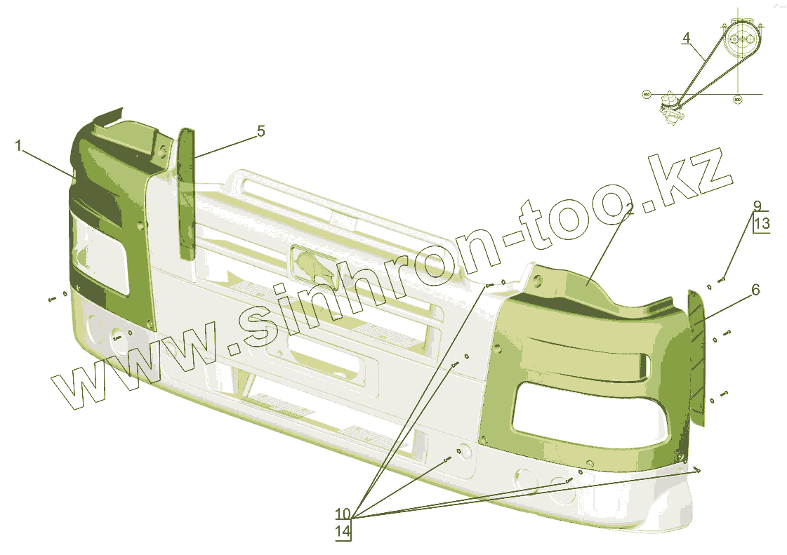 Каталог запасных частей к технике: МАЗ-631019. Установка панелей бампера 643019-2800005