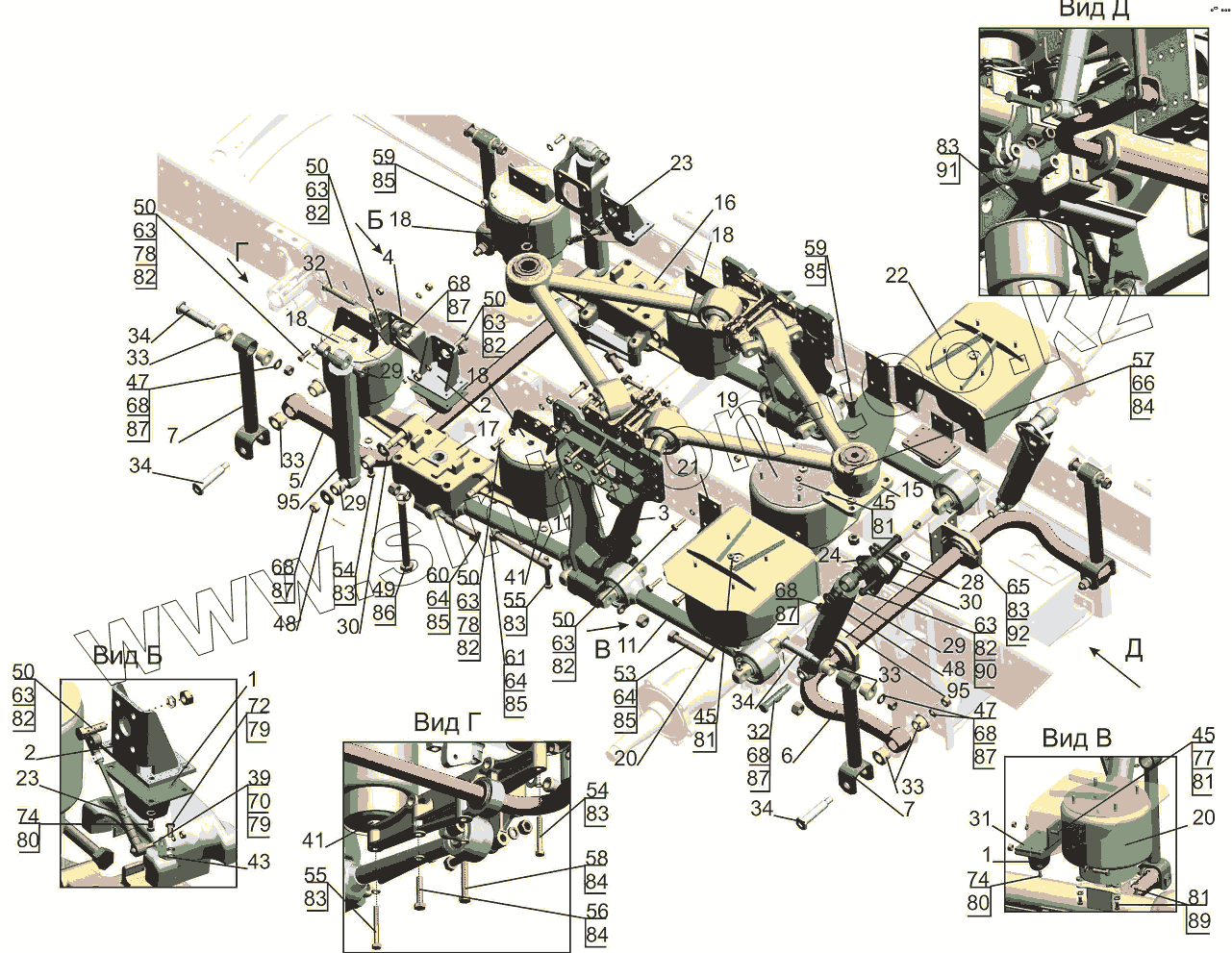 Каталог запасных частей к технике: МАЗ-631019. Установка подвески задней 6310E9-2900002-000