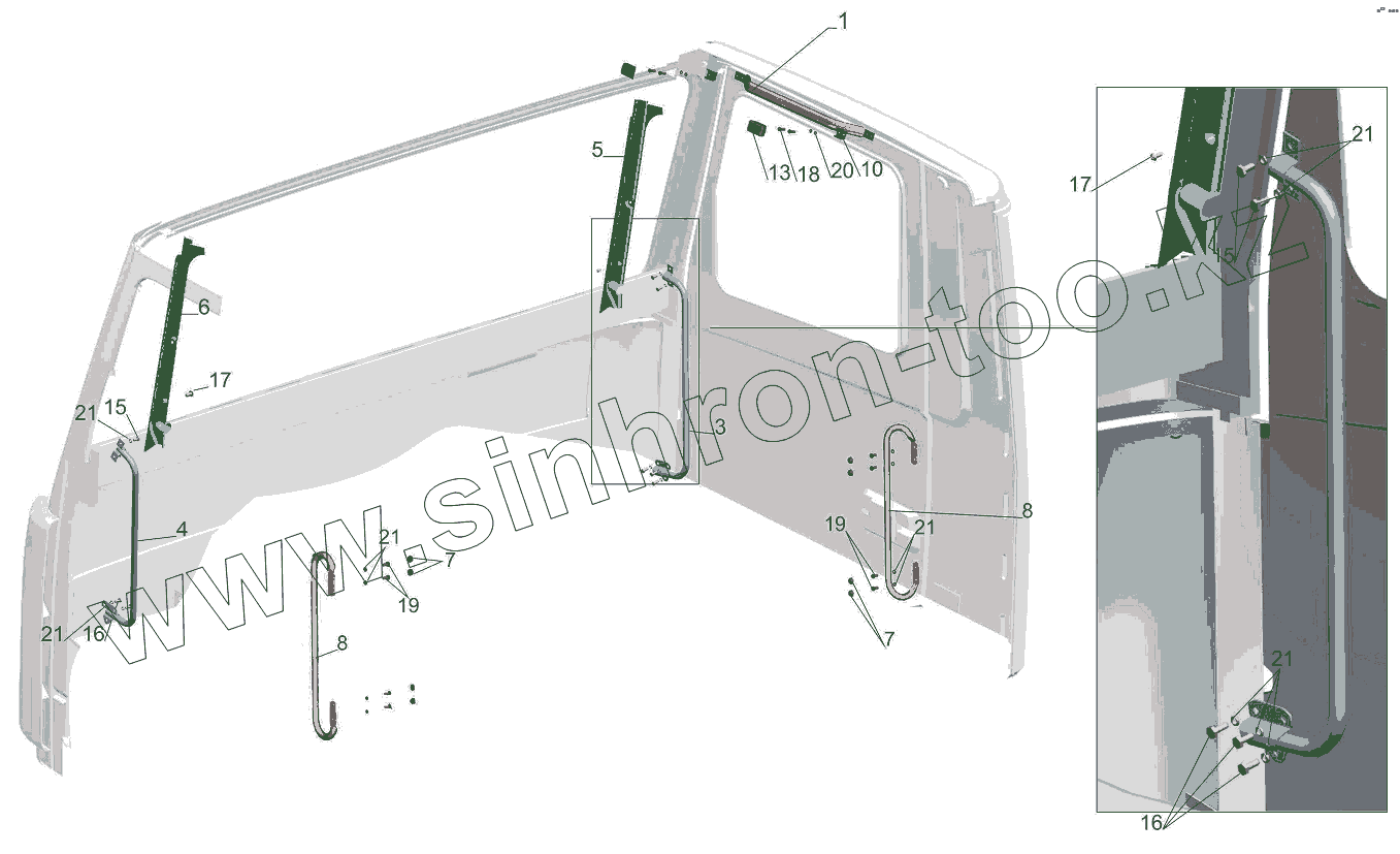Каталог запасных частей к технике: МАЗ-631019. Установка поручней в кабине 6430-8200030