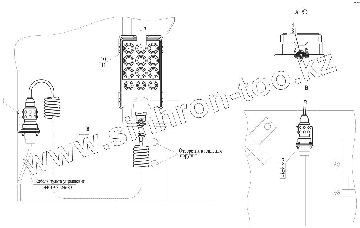 Каталог запасных частей к технике: МАЗ-631019. Установка пульта управления пневмоподвеской 544019-3700153