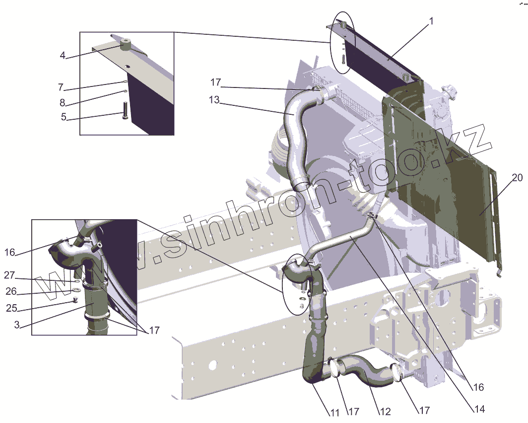 Каталог запасных частей к технике: МАЗ-631019. Установка системы охлаждения 544019-1300005