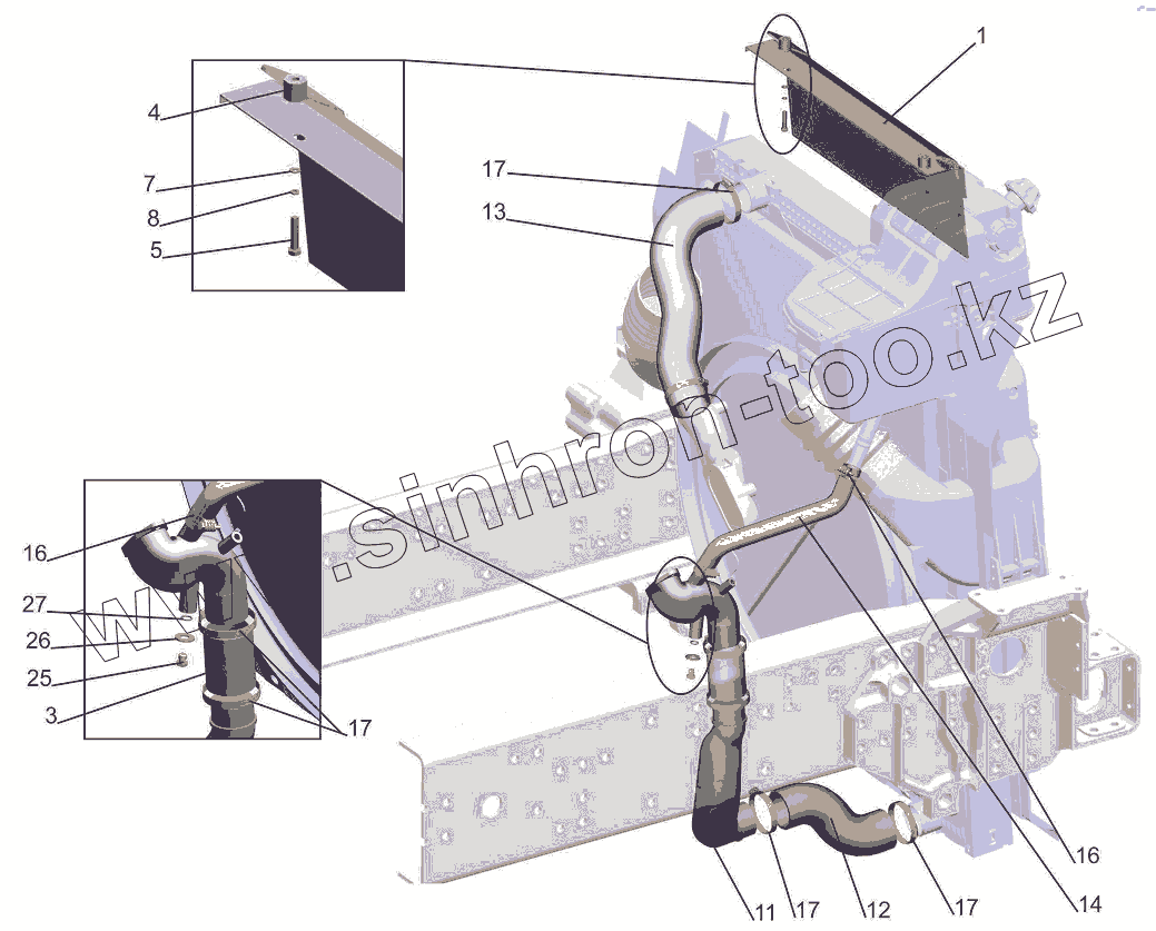 Каталог запасных частей к технике: МАЗ-631019. Установка системы охлаждения 544019-1300005-010
