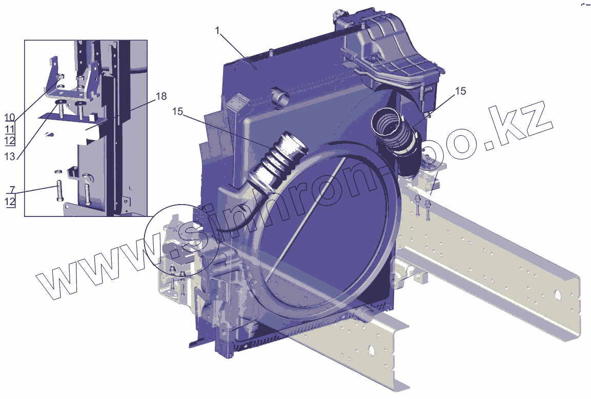 Каталог запасных частей к технике: МАЗ-631019. Установка системы охлаждения наддувочного воздуха 544019-1300040