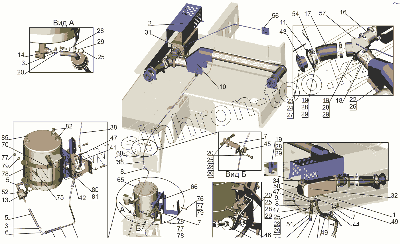Каталог запасных частей к технике: МАЗ-631019. Установка воздушного отопителя 544019-8100002-010