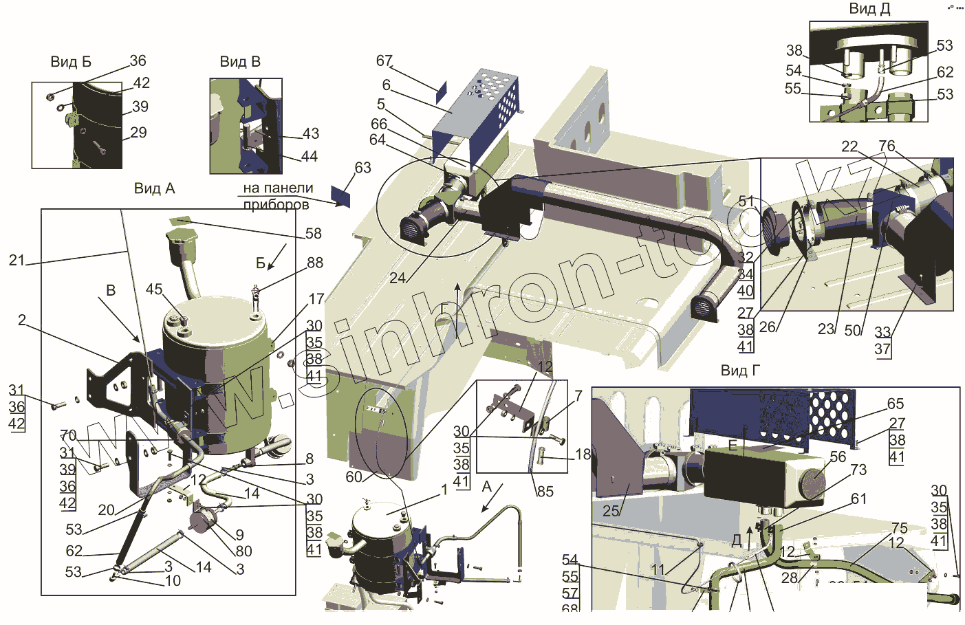 Каталог запасных частей к технике: МАЗ-631019. Установка воздушного отопителя 544019-8100002-011