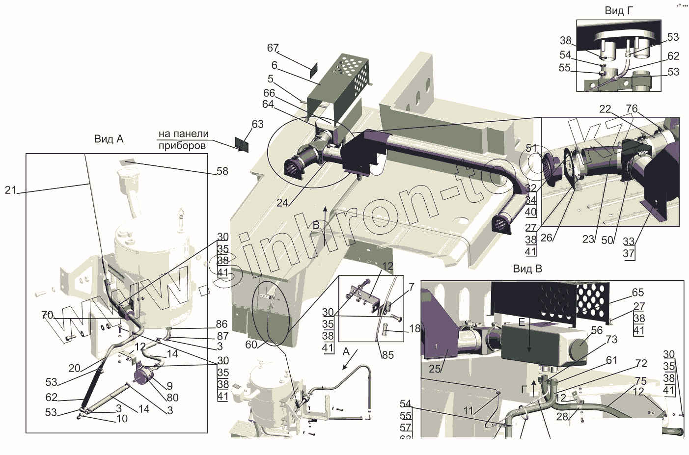 Каталог запасных частей к технике: МАЗ-631019. Установка воздушного отопителя 6430-8100002-001